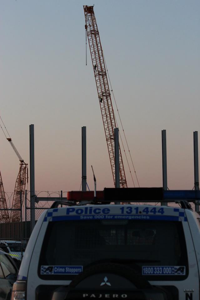 A banner drop at a construction site for a new coal loader terminal at the Port of Newcastle in the New South Wales Hunter Valley ended when police instructed the 60 metre crane be lowered to the ground. The Protestors say they were not given warning of this action and alledged it imperiled their lives.