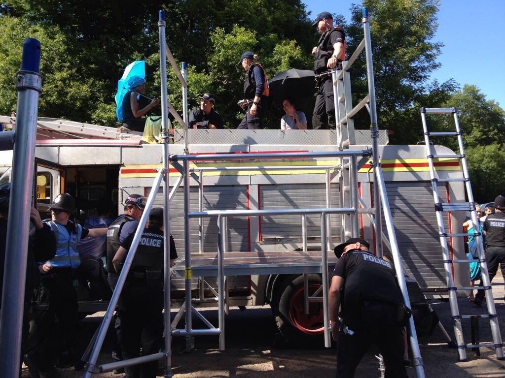 After turning back workers and their equipment for the last several hours, police have arrived on scene and threatened to cut Felix’s life-line.