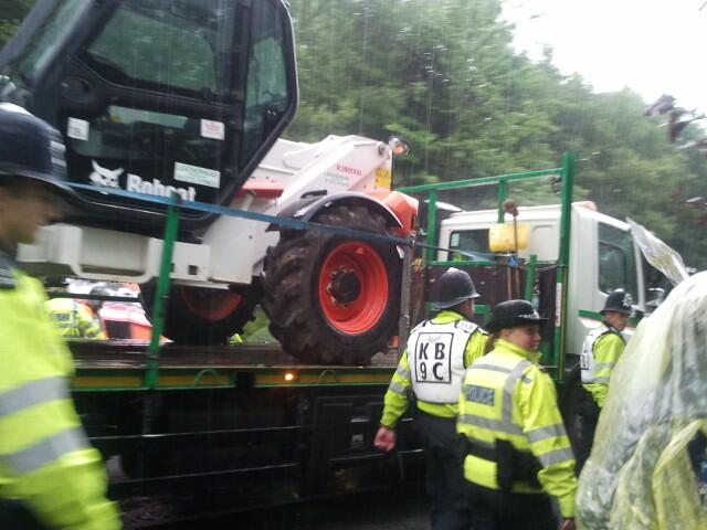 Police had intended to tie life-line off to two backhoes. After some uncertainty, both pieces of equipment drove off without attempting it.